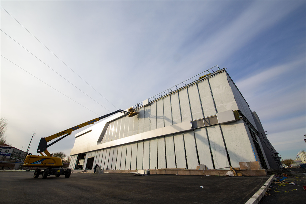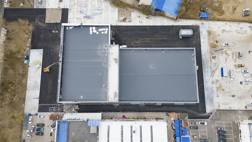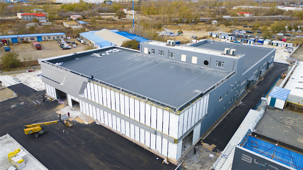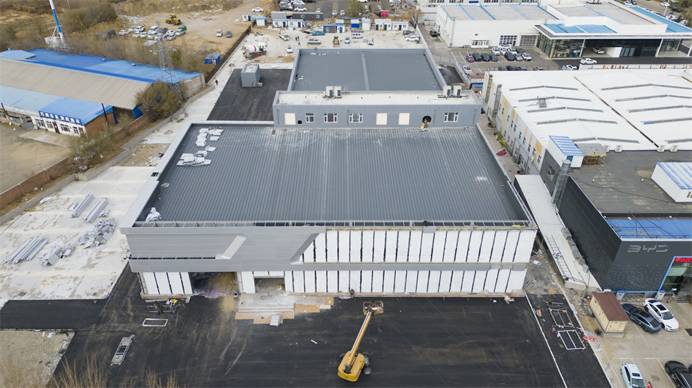 項(xiàng)目特點(diǎn):該項(xiàng)目銷售區(qū)為鋼框架結(jié)構(gòu),維修區(qū)為門式鋼架結(jié)構(gòu)。鋼框架部分結(jié)構(gòu)夾層多種標(biāo)高,增加了現(xiàn)場(chǎng)施工難度。屋面局部設(shè)置高位水箱間。維修區(qū)部分為34.61m跨度無中柱門式鋼架結(jié)構(gòu),內(nèi)部設(shè)置多個(gè)夾層梁,屋面保溫為玻璃絲綿現(xiàn)場(chǎng)復(fù)合板,屋面外板均為475型360°咬合連接板。墻體均為士建墻體。